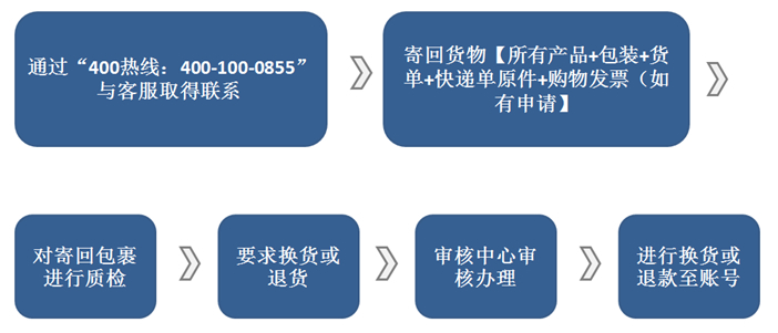 2. 遵循退換貨受理流程,以確保及時(shí)為您辦理退換貨服務(wù);